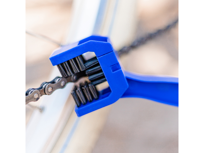 Velosipēdu ķēdes suka. Ļauj tīrīšanu, nenoņemot ķēdi. Otas galvenās daļas dizains ļauj ātri un rūpīgi veikt tīrīšanu, izmantojot papildu tīrīšanas līdzekļus (piemēram, putas uz gāzes - Velosipēds uz Wax no mūsu piedāvājuma)