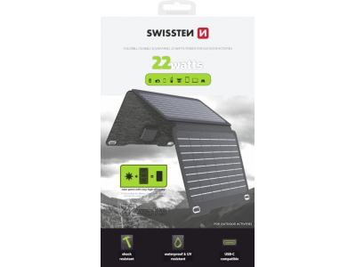 SWISSTEN saliekamais saules panelis 22W ir ideāls sabiedrotais dabas mīļotājiem, ceļotājiem un āra entuziastiem. Tas ļauj efektīvi uzlādēt jūsu ierīces tieši no saules enerģijas, veicinot ilgtspējīgu dzīvesveidu.