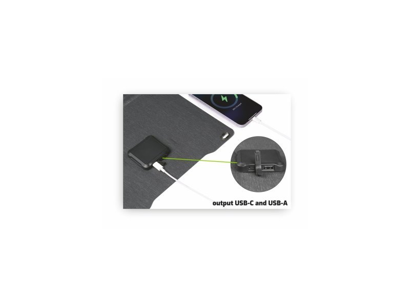 Pateicoties salokāmajam dizainam, panelis ir viegls, pārnēsājams un viegli uzglabājams. Izgatavots no izturīga ETFE materiāla, tas nodrošina ilgu kalpošanas laiku un augstu efektivitāti pat sarežģītos apstākļos. Ar praktiskām USB-C un USB-A izejām tas var uzlādēt vairākas ierīces vienlaikus.