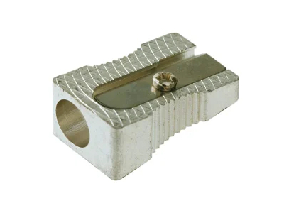 Produkta apraksts Koniska veida, metāla zīmuļu asināmais. Piemērots zīmuļiem ar diametru 8 mm. Izmērs 2,7x1,1x1,5 cm.