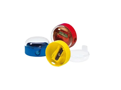 Produkta apraksts Kupolveida plastmasas korpuss ar caurspīdīgu tvertni atgriezumiem. Izturīgs tērauda asmens. Piemērots zīmuļiem ar diametru 8.2mm. Košās krāsās - sarkans, zils un dzeltens. Izmērs: 4.5x3cm.