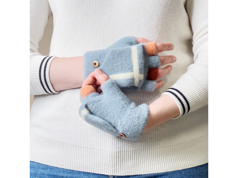 Mittens ir pieejami piecās pasteļkrāsās. Katram cimdam uz pirkstiem ir atšķirīgs krāsu komplekts, radot jautru un jautru rakstu. Jūs noteikti atradīsiet krāsu, kas būs prieks jums!