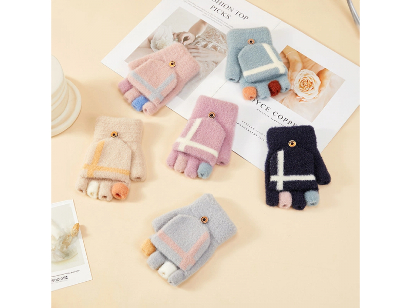 Mittens ir pieejami piecās pasteļkrāsās. Katram cimdam uz pirkstiem ir atšķirīgs krāsu komplekts, radot jautru un jautru rakstu. Jūs noteikti atradīsiet krāsu, kas būs prieks jums!