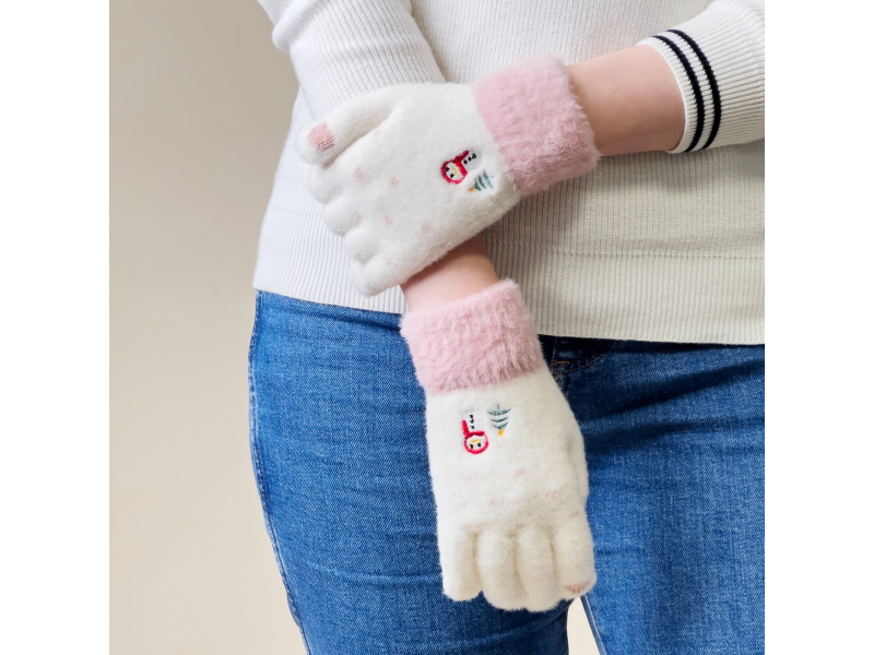 Jūs zināt, ka sajūta, kad jums ir jānoņem cimdi, lai lietotu tālruni vai tableti un temperatūra ārpusē ir zem nulles? Šim cimdu modelim ir īpašs materiāls uz īkšķa un rādītājpirksta (gan iekšpusē, gan ārpusē), kas ļauj izmantot taustes ekrānus, neuztraucoties par aukstumu. Tagad tu don't ir jāizvēlas starp siltumu un komfortu! PSA grupa Šie šarmantie cimdi ir vairāk nekā tikai aizsardzība pret aukstumu - tie ir moderns akcents, kas atdzīvinās jebkuru ziemas stilu. Izšūtais sniegavīra un Ziemassvētku eglītes modelis uz krītoša sniega fona papildina ziemas maģiju.