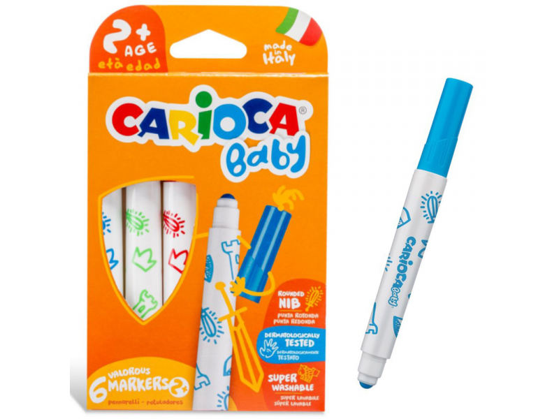 Iepazīstieties ar krāsainajiem flomāsteriem, kas radīti mazākajiem māksliniekiem no 2 gadu vecuma! Šie dermatoloģiski testētie flomāsteri ar 6 košām krāsām ir ideāli piemēroti bērnu pirmajiem zīmēšanas un radošuma soļiem. Tie palīdzēs attīstīt smalko motoriku un iztēli, nodrošinot jautras un drošas nodarbes gan mājās, gan ceļā.