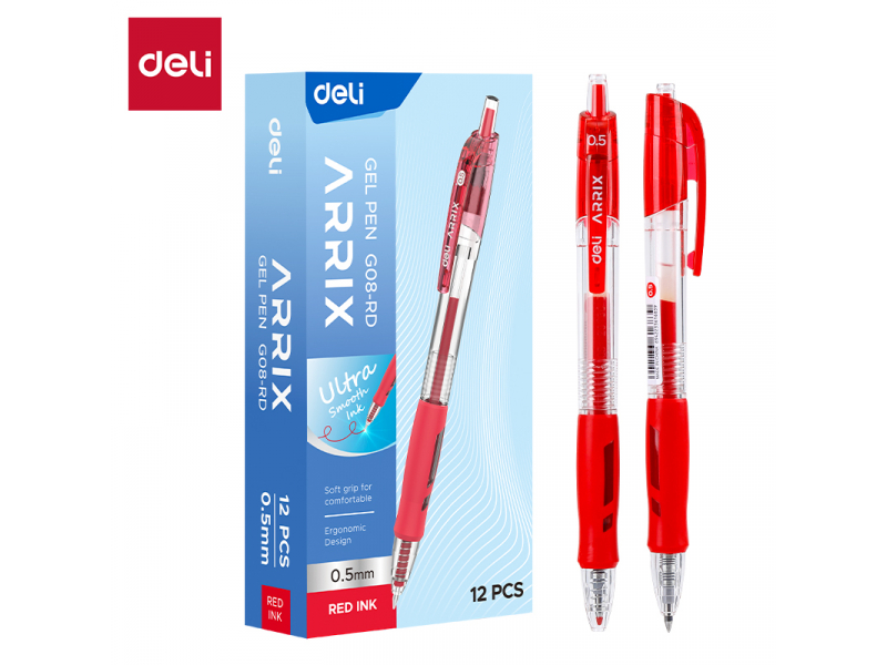 Piedzīvojiet rakstīšanas vieglumu ar Deli Arris G08-RD gēla pildspalvu. Šī automātiskā pildspalva ar spilgti sarkanu tinti un smalku 0.5 mm lodes veida uzgali ir radīta tiem, kas novērtē precizitāti un gludumu katrā līnijā. Ideāli piemērota detalizētām piezīmēm, svarīgas informācijas izcelšanai vai ikdienas rakstīšanas uzdevumiem, nodrošinot skaidrību un stilu.