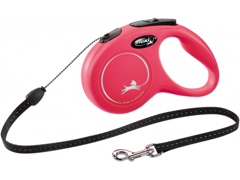 Inerces pavada suņiem - Flexi New Classic Cord Leashes S. Izvelkama pavada, paredzēta suņiem līdz 12 kg. Izturīgs plastmasas korpuss, hromēta aizkare. Ir iespējams pievienot Flexi firmas izgatavotos aksesuārus. Pavadas Svars: ~160 grami. Garumi: 5 m. Krāsa: sarkana.