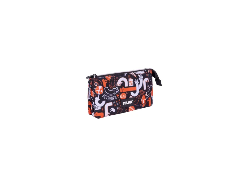 Produkta apraksts Penālis ar 5 nodalījumiem. 2 rāvējslēdzēju aizdare. Fingers special sērija. Iedvesma no izteiksmīgiem universālas komunikācijas žestiem un roku veiklības, apvienojot melnu, oranžu un baltu krāsu jautrā rakstā. Auduma sastāvs: poliestera ārējais audums un iekšējā odere. Izmērs: 22x12x4cm.