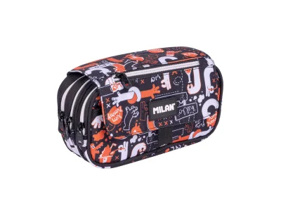 Produkta apraksts Liela ietilpības penālis ar 3 nodalījumiem ar rāvējslēdzējiem un nelielu priekšējo kabatu uz atloka. Spiedpogas aizdare. "Fingers special" sērija. Iedvesma no izteiksmīgām universālas komunikācijas un roku veiklības žestiem, apvienojot melnu, oranžu un baltu krāsu jautrā apdrukā. Auduma sastāvs: poliesters. Izmēri: 13 x 24 x 10 cm.