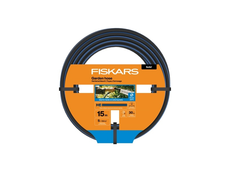 - The Fiskars Solid 13 mm (1/2") is a high-quality, durable watering hose for a premium watering and washing experience.
