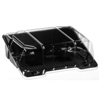 Kūku kārbas ar atveramu vāku Kvadrātveida kūku trauks 172x172x70mm, melns ar caurspīdīgu vāku, RPET....